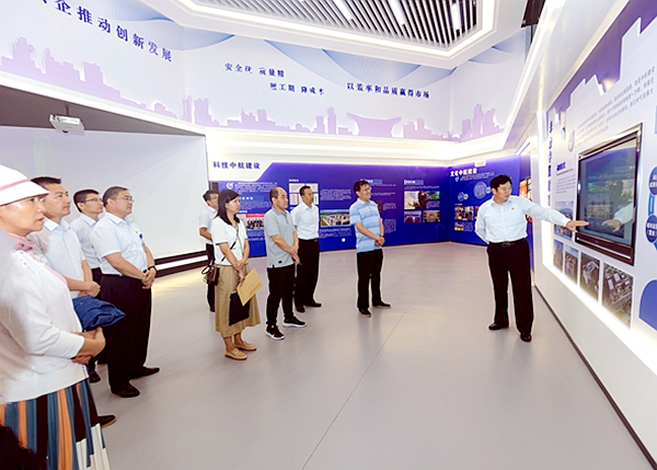 于新华副处长一行首先到集团公司展厅参观,对威廉希尔网页版·(中国)发展历程、产业项目概况、未来发展规划以及党建工作进行全面了解。